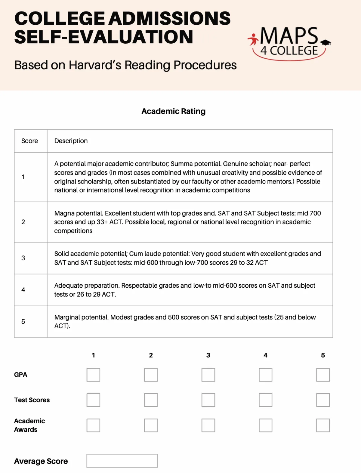 Get our FREE self-assessment for your college chances, inspired by Harvard's Admissions Reading Procedures